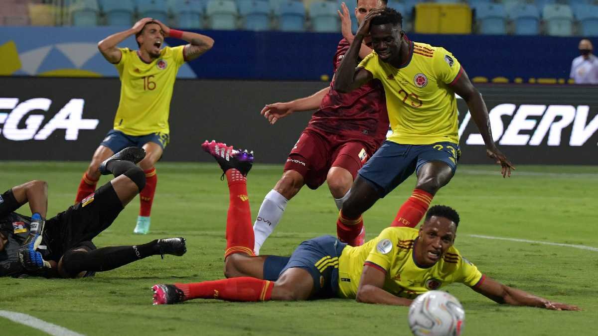 El seleccionado colombiano fue ampliamente superior a su rival, pese a que no lució en el campo de juego, y contó con una gran cantidad de situaciones de gol, pero el arquero venezolano Wuilker Fariñez se irguió como la figura del cotejo al sostener el cero en su valla.