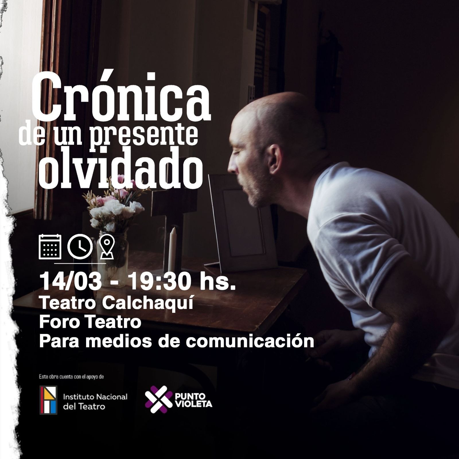 En el marco del Plan Federal “Teatro para la Democracia”, este martes 14 a partir de las 19:30 horas en el Complejo Cultural Calchaquí (Sarniento 450), la obra «Crónica de un presente olvidado”, brindara una función especial para medios de comunicación.